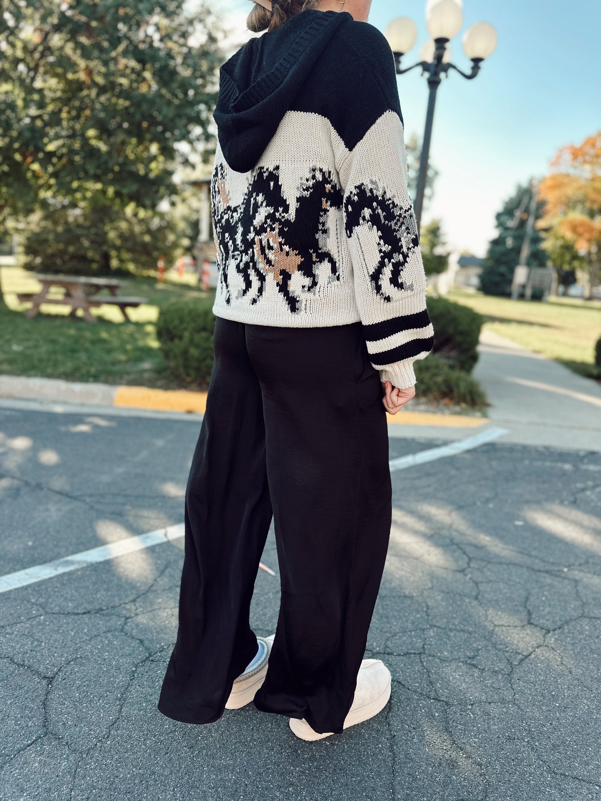 • Soft knit with detailed horse pattern