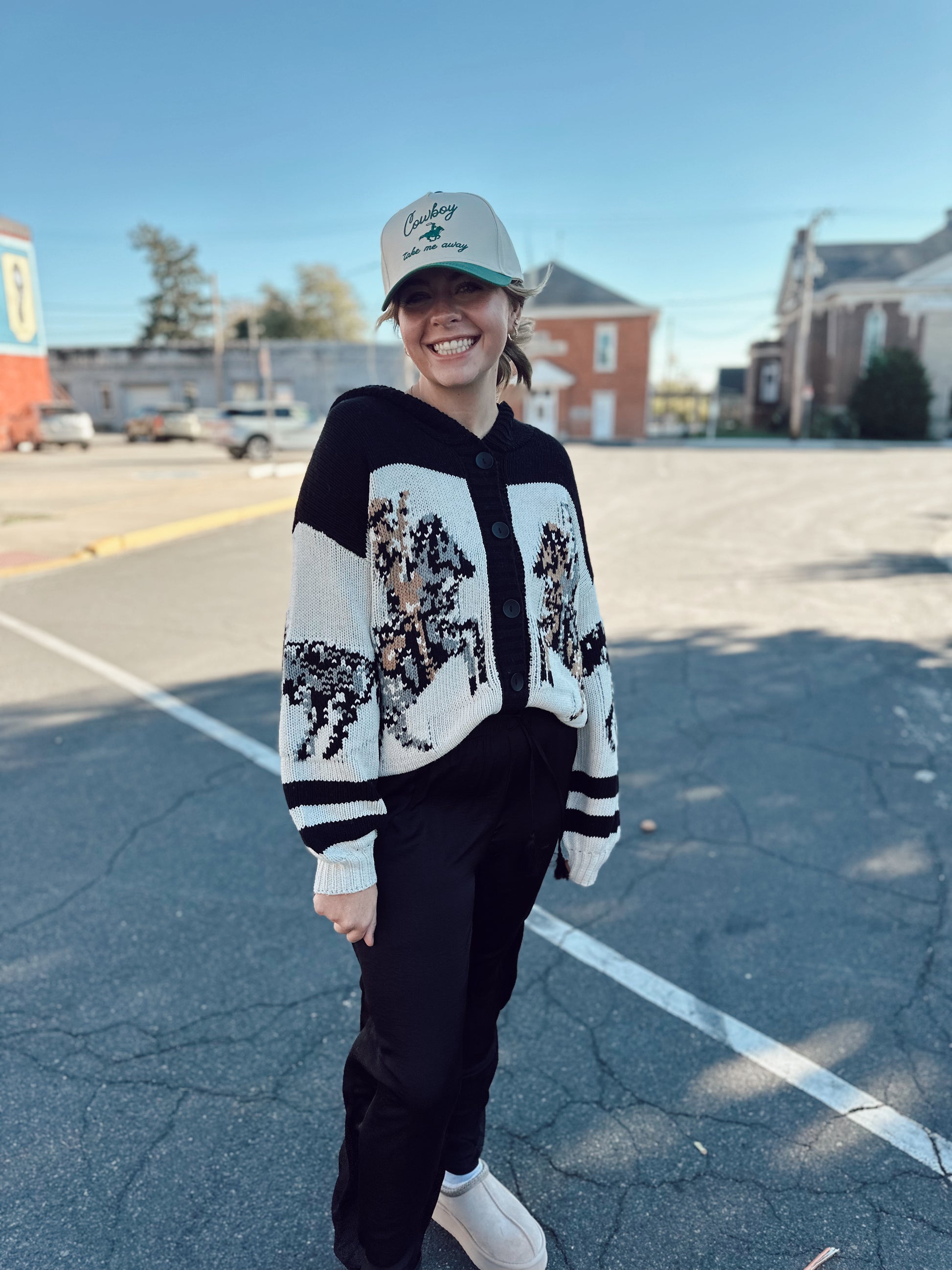 Style Tip: Pair it with distressed denim and boots for that effortless “cozy cowgirl” look that goes from coffee shop to countryside.
